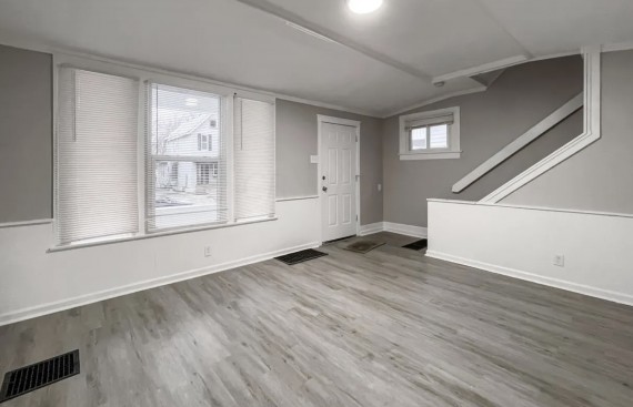 This 2 story home is located in Central Hilltop area of Columbus and was renovated in 2022. The home has 3 bedrooms, 1.5 bathrooms, 1,148 sq ft of living space, and a full basement. The exterior features an open front porch, a fenced in backyard, and a detached garage accessible via the back alley and a path through the backyard. The property sits on a 0.09 acre lot.