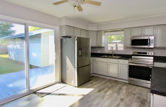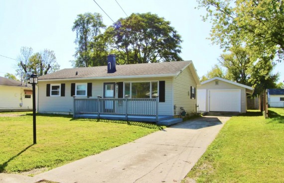 This ranch home has 2 bedrooms, 1 bathroom with a walk in shower, and 864 sq ft of living space. The exterior features a driveway with a 1-car detached garage, a shed, a front and back deck, on a 60x120 foot lot.
